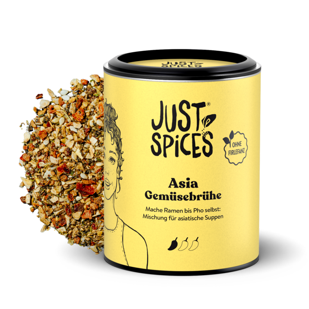 Vietnamesische Pho heute, japanische Ramen morgen: Mit unserer Asia Gemüsebrühe hast Du die perfekte Basis für selbstgemachte Suppen! Einfach 5 TL vom Mix und 1 EL Sojasoße ins 1 L Wasser geben, 30 Minuten ziehen lassen und genießen.