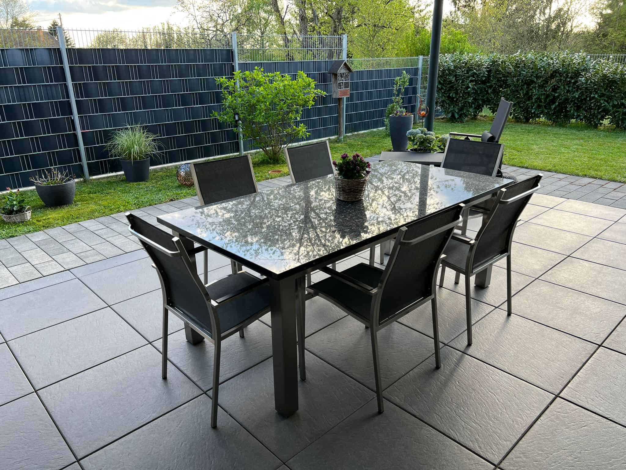 Edelstahltisch “Ehrenburg” mit 3 cm Granitplatte “BluePearl” | Waldiger