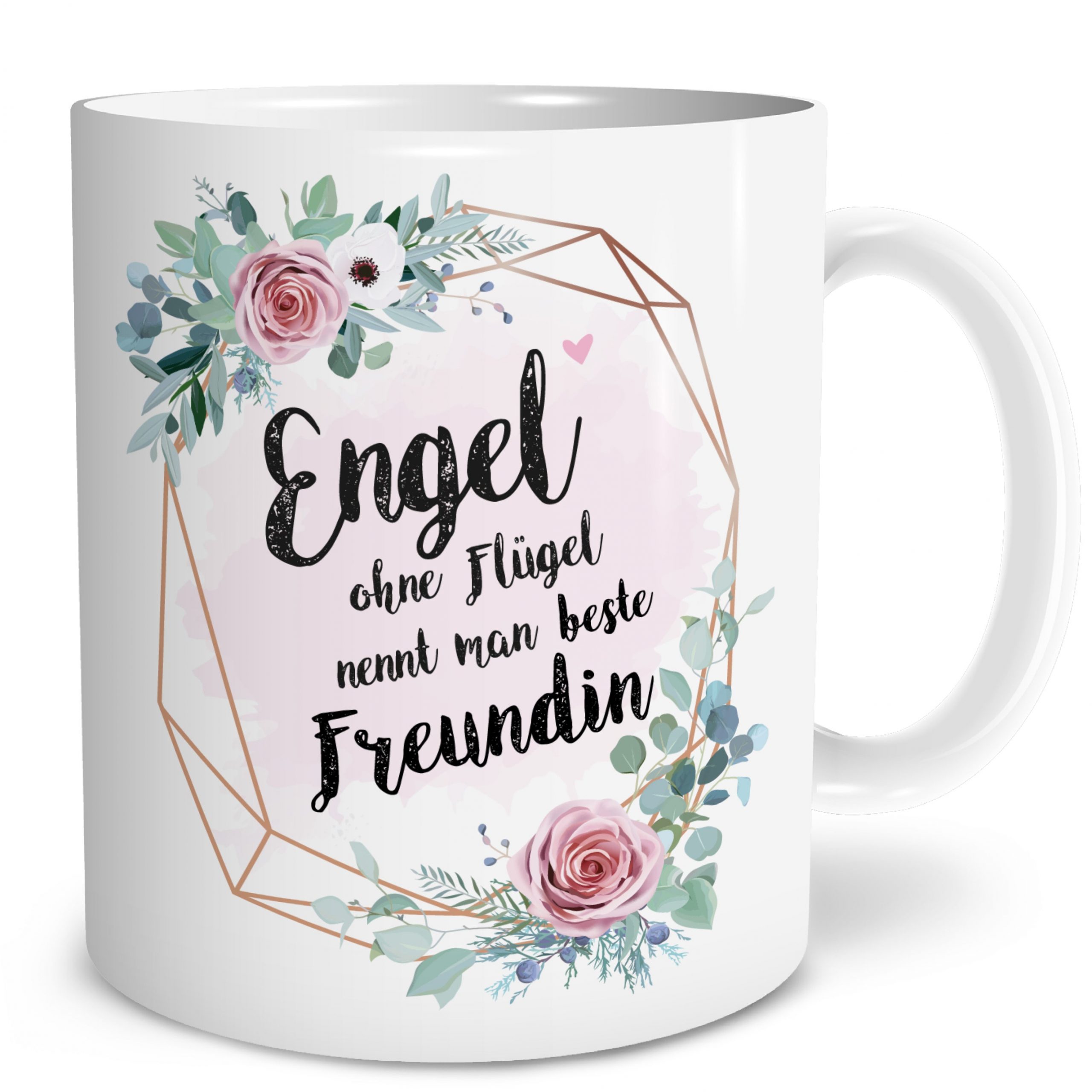 Engel beste Freundin Große Kaffee-Tasse mit Spruch im Geschenkkarton Geschenke Geschenkideen für die beste Freundin zum GeburtstagHochzeitstag Sichere Dir jetzt dieses persönliche Geschenk für Deine beste Freundin! Du wirst sie damit garantiert zu Freudentränen rühren. VersprochenHOHE FARBBRILLANZ: Die liebevoll gestaltete Kaffeetasse besticht mit einer hohen Farbbrillanz und Langlebigkeit durch den hochwertigen Thermo-Transfer-Druck. Der Kaffee-Becher wird in einem hübschen Geschenkkarton geliefert.SEHR PFLEGELEICHT &, HOCHWERTIG: Die große Tee-Tasse fasst 300 ml und ist durch die spezielle Beschichtung spülmaschinengeeignet (bis zu 3500 Spülgänge), sehr pflegeleicht, kratzfest, Mikrowellen geeignet und sehr hochwertig verarbeitet.SCHÖNE GESCHENKIDEE: Das liebevoll gestaltete Produkt ist eine schöne Geschenkidee zu Weihnachten, zum Geburtstag oder zur Hochzeit. Überrasche Deine beste Freundin mit einem persönlichen Geschenk, das von Herzen kommt.100% ZUFRIEDENHEIT: Das Produkt wird mit viel Liebe in unserer Manufaktur in Deutschland in Handarbeit hergestellt. Die Qualität unserer Produkte liegt uns dabei sehr am Herzen. Solltest Du dennoch unzufrieden sein, erhältst Du Dein Geld zurück!