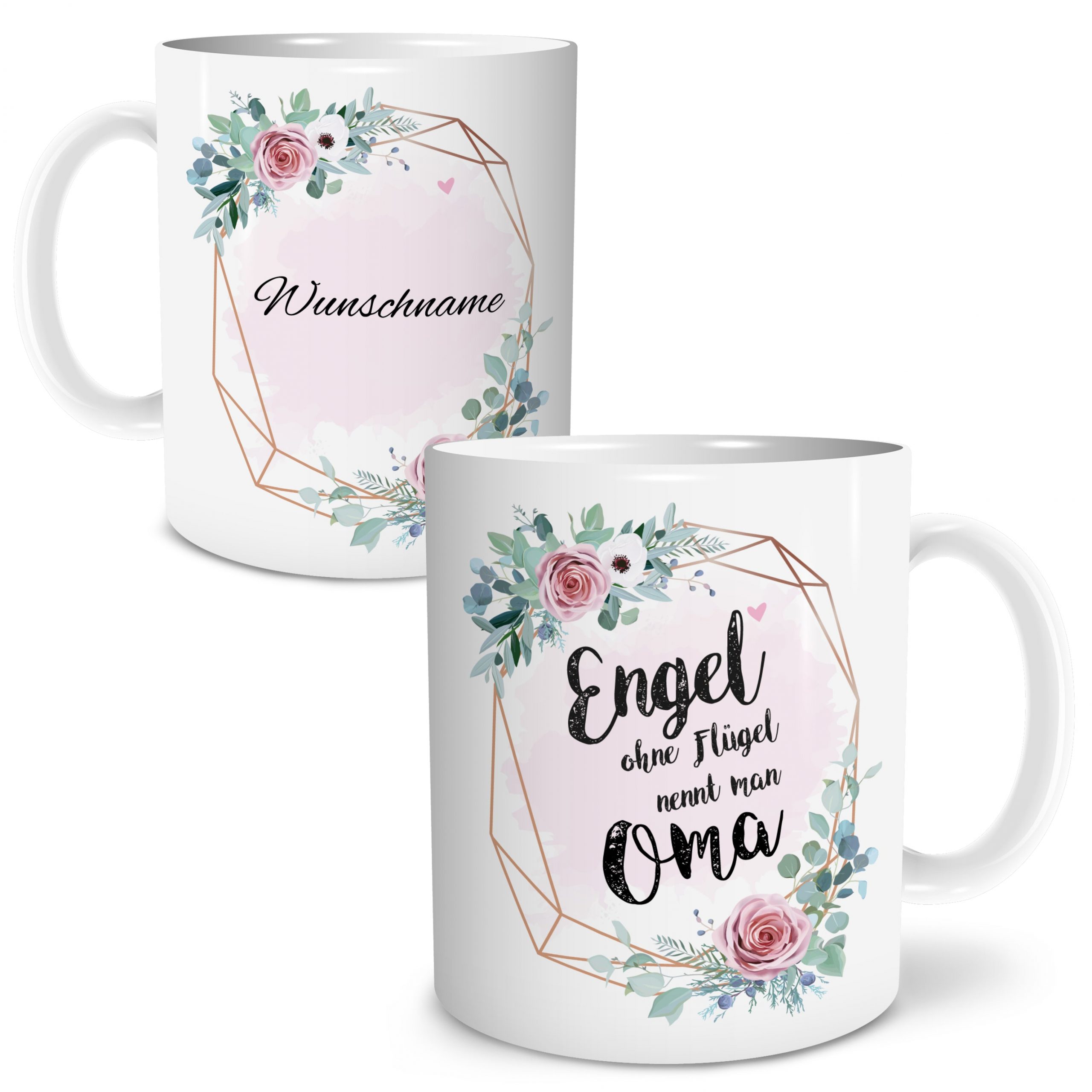 Engel Oma Große Kaffee-Tasse mit Spruch im Geschenkkarton Personalisiert mit Namen Geschenke Geschenkideen für Oma zum Geburtstag Sichere Dir jetzt dieses persönliche Geschenk für Deine Oma! Du wirst sie damit garantiert zu Freudentränen rühren. VersprochenHOHE FARBBRILLANZ: Die liebevoll gestaltete Kaffeetasse besticht mit einer hohen Farbbrillanz und Langlebigkeit durch den hochwertigen Thermo-Transfer-Druck. Der Kaffee-Becher wird in einem hübschen Geschenkkarton geliefert.SEHR PFLEGELEICHT &, HOCHWERTIG: Die große Tee-Tasse fasst 300 ml und ist durch die spezielle Beschichtung spülmaschinengeeignet (bis zu 3500 Spülgänge), sehr pflegeleicht, kratzfest, Mikrowellen geeignet und sehr hochwertig verarbeitet.SCHÖNE GESCHENKIDEE: Das Motiv ist eine schöne Geschenkidee zu Weihnachten als Weihnachtsgeschenk für Oma, als Dankeschön Geschenk oder als Geburtstagsgeschenk zum Geburtstag für Oma.100% ZUFRIEDENHEIT: Das Produkt wird mit viel Liebe in unserer Manufaktur in Deutschland in Handarbeit hergestellt. Die Qualität unserer Produkte liegt uns dabei sehr am Herzen. Solltest Du dennoch unzufrieden sein, erhältst Du Dein Geld zurück!