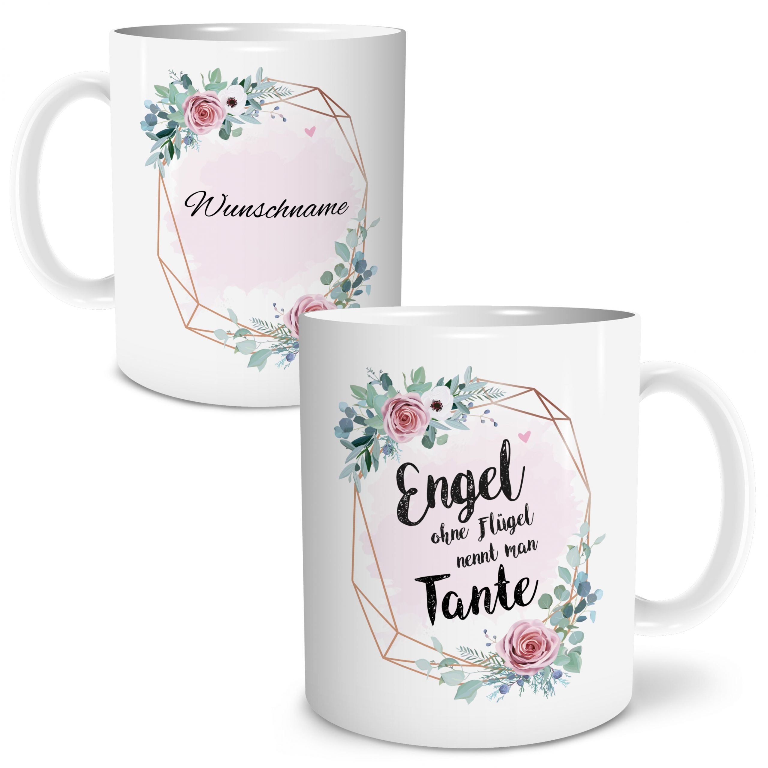 Engel Tante Große Kaffee-Tasse mit Spruch im Geschenkkarton Personalisiert mit Namen Geschenke Geschenkideen für Tante zum Geburtstag Sichere Dir jetzt dieses persönliche Geschenk für Deine Tante! Du wirst sie damit garantiert zu Freudentränen rühren. VersprochenHOHE FARBBRILLANZ: Die liebevoll gestaltete Kaffeetasse besticht mit einer hohen Farbbrillanz und Langlebigkeit durch den hochwertigen Thermo-Transfer-Druck. Der Kaffee-Becher wird in einem hübschen Geschenkkarton geliefert.SEHR PFLEGELEICHT &, HOCHWERTIG: Die große Tee-Tasse fasst 300 ml und ist durch die spezielle Beschichtung spülmaschinengeeignet (bis zu 3500 Spülgänge), sehr pflegeleicht, kratzfest, Mikrowellen geeignet und sehr hochwertig verarbeitet.SCHÖNE GESCHENKIDEE: Das liebevoll gestaltete Produkt ist eine schöne Geschenkidee zu Weihnachten oder zum Geburtstag. Überrasche Deine Tante mit einem persönlichen Geschenk, das von Herzen kommt.100% ZUFRIEDENHEIT: Das Produkt wird mit viel Liebe in unserer Manufaktur in Deutschland in Handarbeit hergestellt. Die Qualität unserer Produkte liegt uns dabei sehr am Herzen. Solltest Du dennoch unzufrieden sein, erhältst Du Dein Geld zurück!