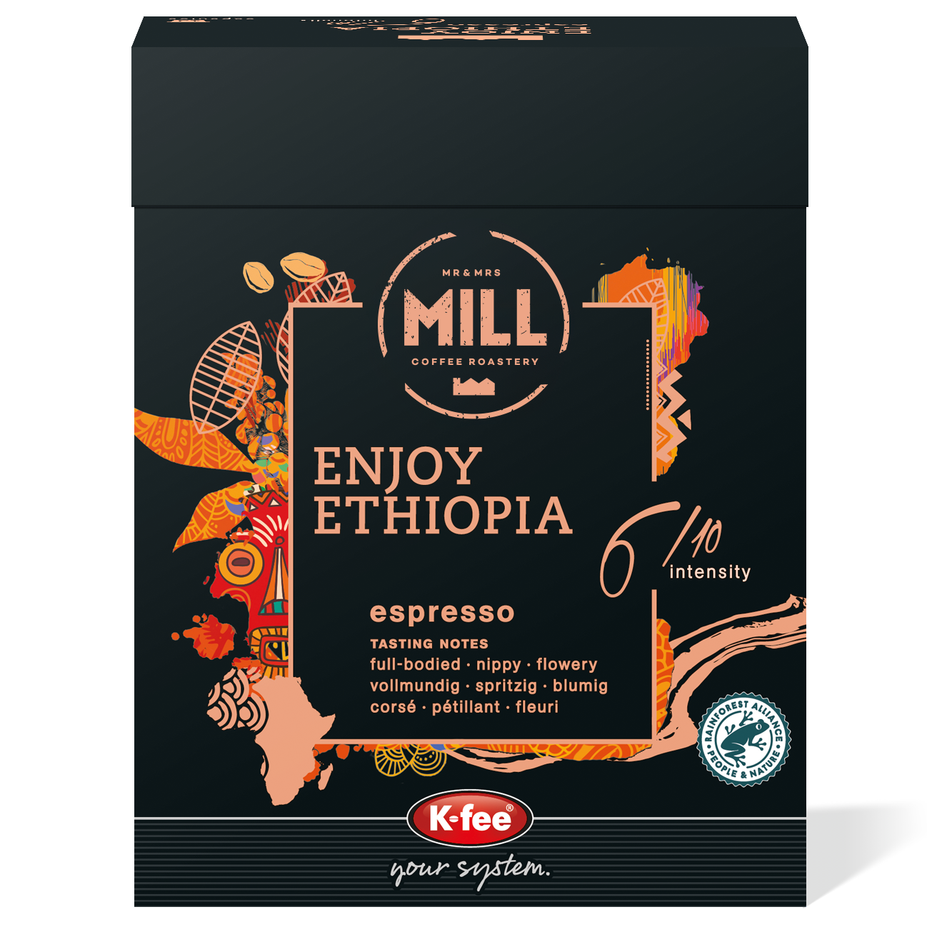Mr & Mrs Mill Enjoy Ethiopia bringt die Essenz äthiopischen Kaffees in Ihre Tasse. Mit blumigen Noten, lebendiger Zitrusfrische und erfrischender Säure verführt dieser Espresso anspruchsvolle Kaffeeliebhaber.