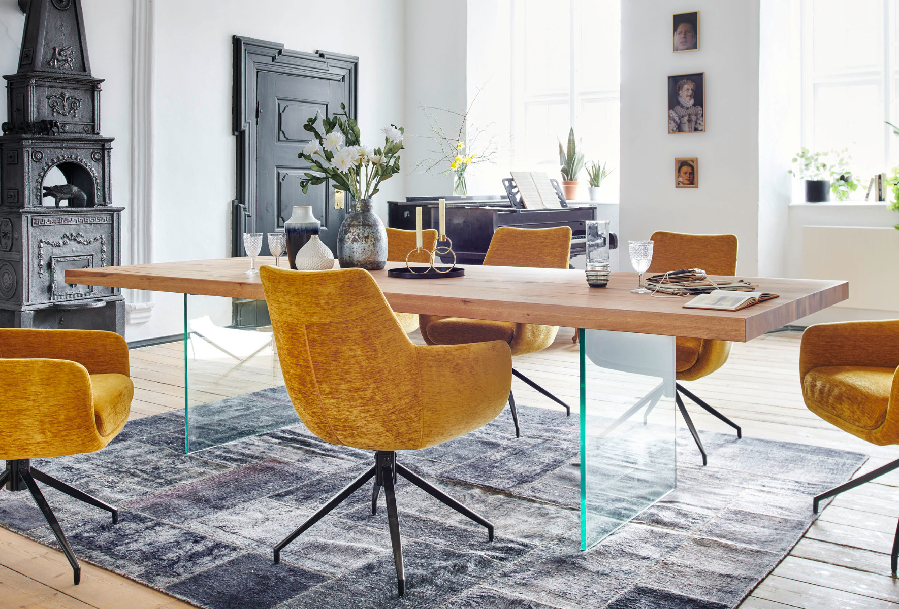 Esstisch Milo aus Balkeneiche mit Glasgestell | massive-naturmoebel quantity