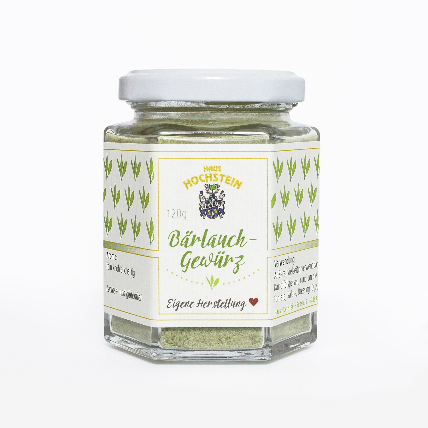 Die selbst hergestellten Gewürze von Chefkoch Thomas Hochstein aus dem beliebten Hotel Restaurant Hochstein in Wenholthausen sind eine Wohltat für jede Küche.Die liebevoll zusammengestellten Zutaten verleihen Ihren Lieblingsgerichten eine besondere Note.Das Bärlauch-Gewürz eignet sich gut für Kartoffelspeisen, mediterrane Gerichte und ist der ideale Begleiter zu Salaten und Dressings. Der große Vorteil des Gewürzes: Bärlauch schmeckt zwar nach Knoblauch, kommt aber ohne die duftenden Nebenwirkungen aus.