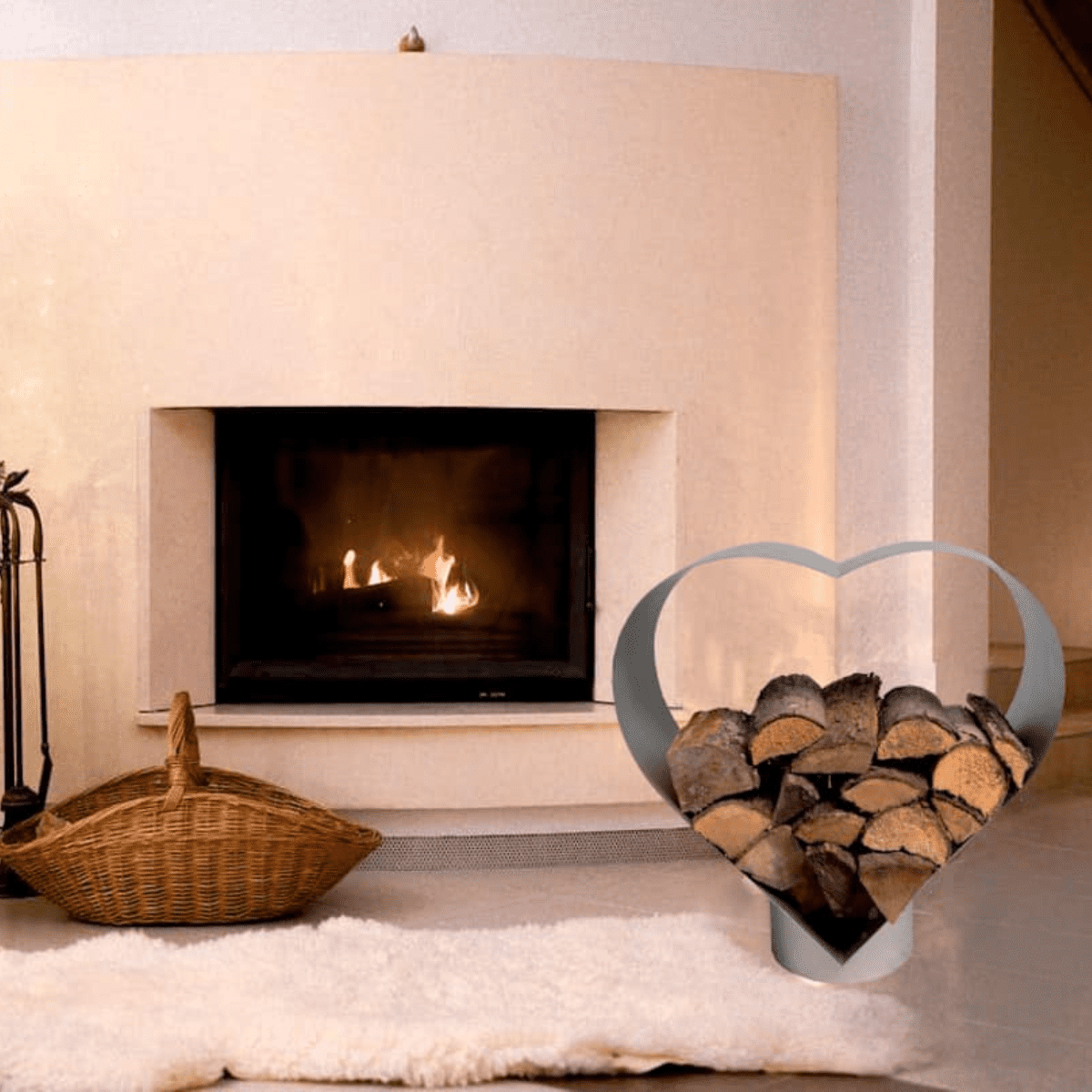 Unser Holzlager in Herzform sorgt für noch mehr romantischen Flair vor Ihrem Kamin!