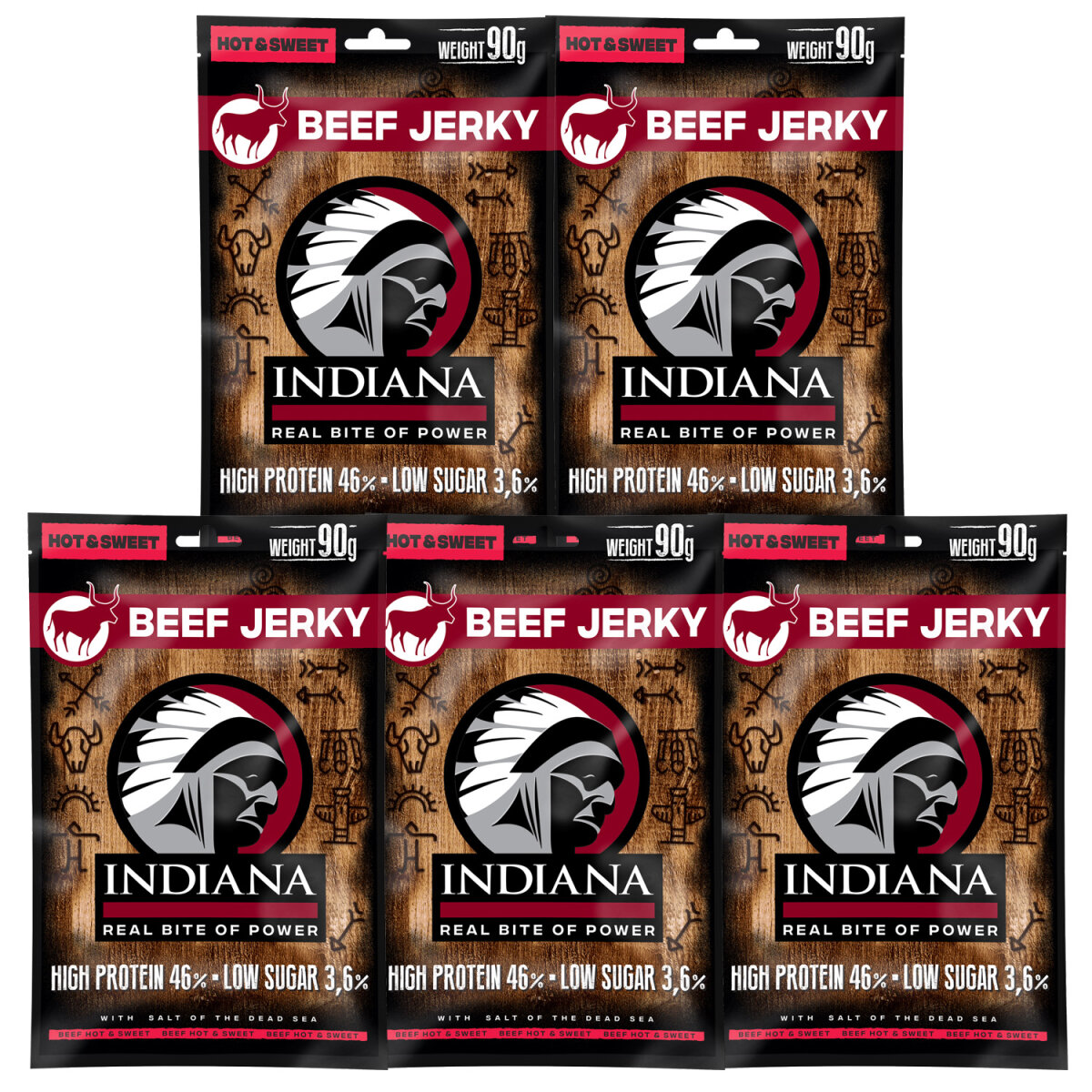 INDIANA Beef Jerky – 90g 5er Pack Hot & Sweet | indiana-jerky