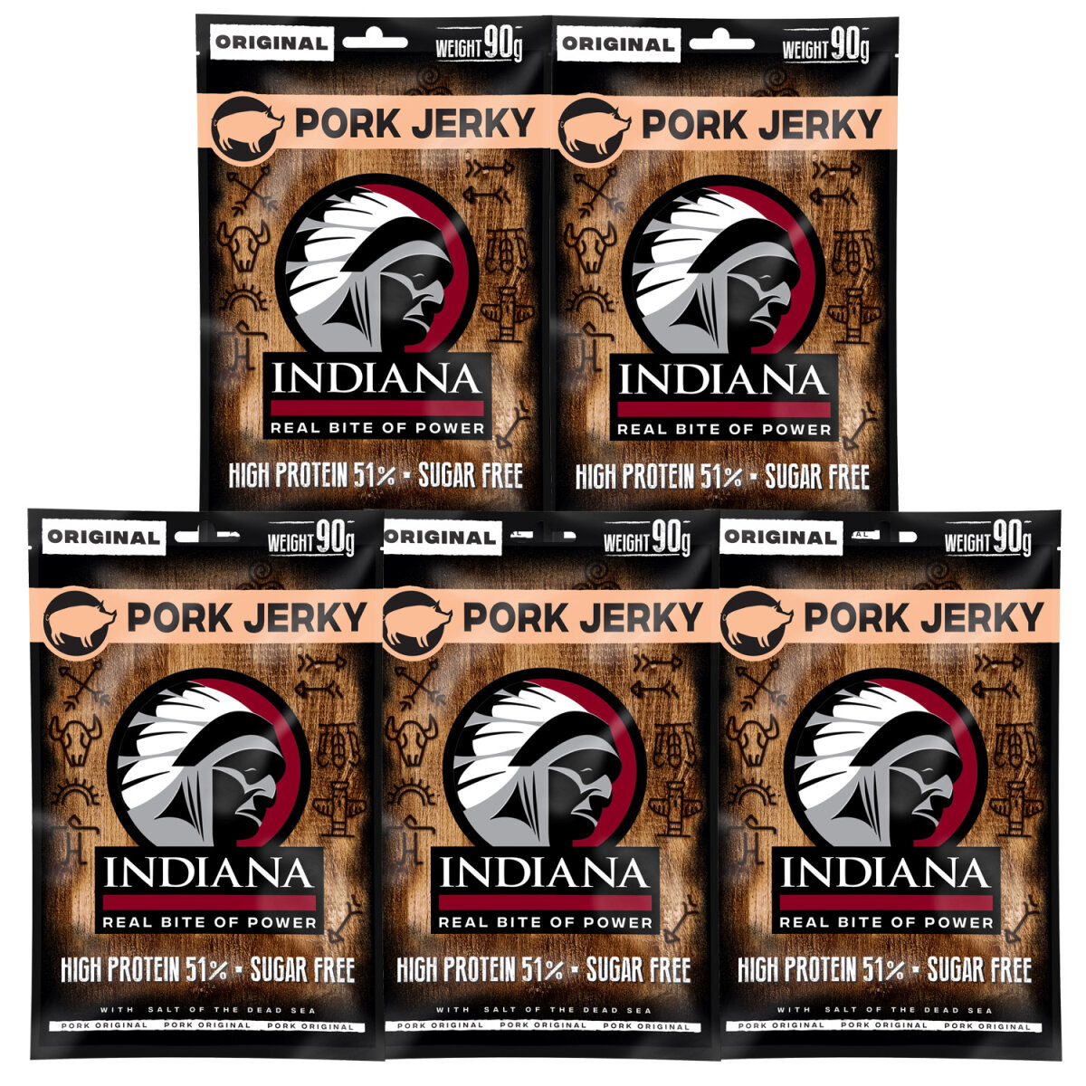 INDIANA Pork Jerky Original 90g 5er Pack | indiana-jerky