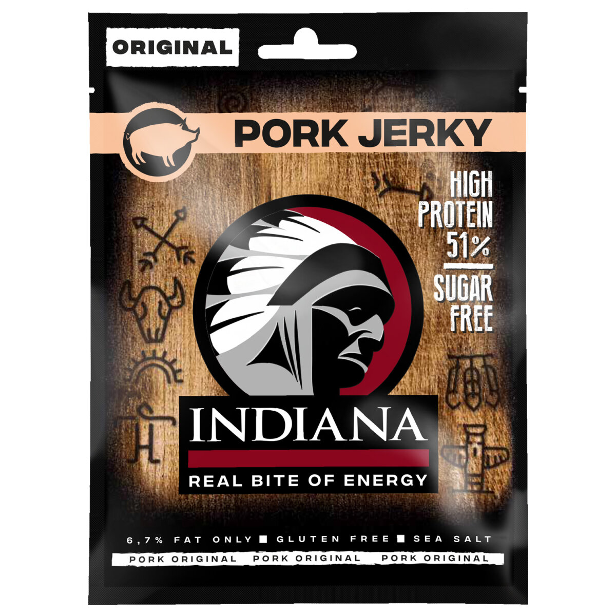 INDIANA Pork Jerky – Original 90g Indiana Pork Jerky ist ein Trockenfleisch nach traditioneller Art – nur in dieser Variante mit ausgesuchtem Schweinefleisch. Dennoch bleibt der herzhafte und feinere Geschmach erhalten, die Nährwerte der Indiana Jerky Produkte passen weit besser zu jeder ausgewogenen, nachhaltigeren Ernährung.. Jerky Pork Original ist: • Proteinreich mit 51% Proteinanteil • Zuckerfrei • Gluten-Free • kohlenhydrat-arm • Traditionell geräuchert Lagerung: keine Kühlung Hinweis: Eventueller weißer Belag auf dem Erzeugnis ist kein Qualitätsmangel. Nach Aufbrechen der Packung innerhalb 48 Stunden verbrauchen. Sauerstoffabsorber innerhalb der Verpackung ist nicht zum Verzehr bestimmt. Hersteller: Indiana s.r.o / Prag Vertrieb: ProVista AG / 30916 Isernhagen