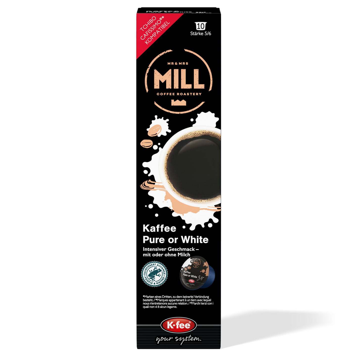 Mr & Mrs Mill Kaffee Pure or White bietet einen intensiven, nussigen Geschmack, der sowohl pur als auch mit Milch zu genießen ist. Eine ausgewogene Mischung aus 100% Arabica-Bohnen aus Lateinamerika und Papua-Neuguinea – der ideale Kaffee für Filterkaffee-Fans.