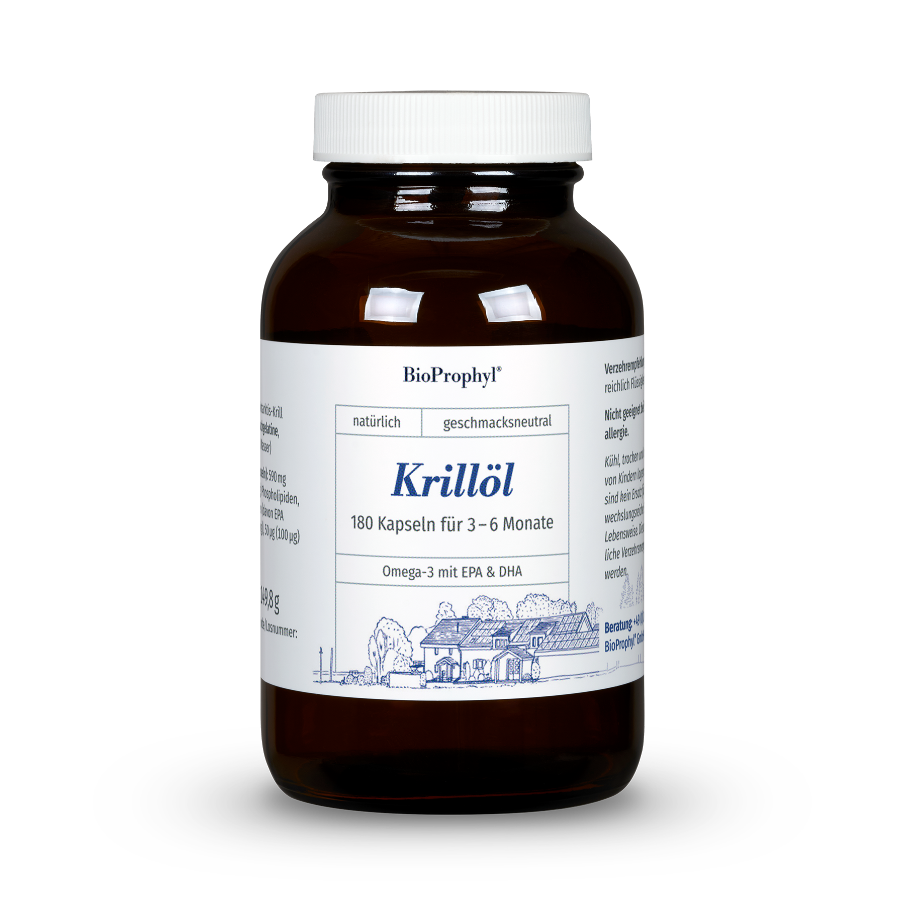 Effektive Omega-3 Versorgung: Krillöl Kapseln mit hohem Gehalt an EPA & DHA Krillöl enthält seine charakteristische rote Farbe durch das Carotinoid Astaxanthin, einem natürlichen Bestandteil der mikroskopisch kleinen Algen, von denen der Krill sich ernährt. Besonders geschätzt wird es aufgrund der enthaltenen und für uns essentiellen Omega-3-Fettsäuren Eicosapentaensäure (EPA) und Docosahexaensäure (DHA). Im Unterschied zu Fischöl sind diese im Krill-Öl nicht an Triglyzeride, sondern an Phospholipide gebunden, die einen wesentlichen Baustein unserer Zellmembranen bilden. Durch diese Bindung weisen die Omega-3-Fettsäuren des Krillöls eine deutlich höhere Bioverfügbarkeit auf und können vom menschlichen Organismus besonders leicht verwertet werden. Sie werden effizienter absorbiert und gelangen somit schneller in den Blutkreislauf und zu den Zielgeweben. Jede Kapseln enthält 89 mg EPA und 41 mg DHA. Cholin, ein weiterer Bestandteil des Krill-Öls, ist am Fett- und Cholesterinstoffwechsel in der Leber beteiligt und trägt nachweislich zur Aufrechterhaltung einer normalen Leberfunktion bei. Zwei Kapseln liefern 82,6 mg Cholin, das zusammen mit den Omega-3-Fettsäuren den ernährungsphysiologischen Vorteil des Krillöls ausmacht. Krillöl Kapseln von Bioprophyl: Schonende Extraktion für maximale Qualität und Reinheit Krillöl ist reich an den für uns essentiellen Omega-3-Fettsäuren EPA und DHA. Sie stellen einen wichtigen Bestandteil einer ausgewogenen Ernährung dar und sind unentbehrlich für eine gesunde Herzfunktion. Das enthaltene Cholin trägt zu einem normalen Homocysteinspiegel bei, dessen Erhöhung als ein Risikofaktor für die Entstehung der koronaren Herzkrankheit gilt. Cholin wirkt sich daher zusammen mit EPA und DHA positiv auf die Herzgesundheit aus. Um diese Nährstoffe als Nahrungsergänzungsmittel nutzen zu können, wird der Krill schonend gefangen und unmittelbar weiterverarbeitet. So entsteht ein qualitativ hochwertiges Produkt, in dem alle wertgebenden natürlichen Inhaltsstoffe des Krills erhalten bleiben. Um die Nachhaltigkeit der Krill-Fänge sicherzustellen, befindet sich an Bord jedes Schiffes ein unabhängiger Beobachter, der die Fangmenge ordnungsgemäß dokumentiert und meldet. Zusätzlich wird die Menge des Beifangs auf ein Minimum reduziert und regelmäßig vom Marine Stewardship Council (MSC) kontrolliert.