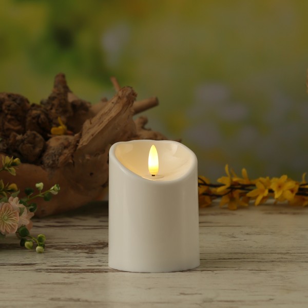 LED Kerze 3D Flamme – Kunststoff – flackernde Flamme – H: 10cm – D: 7,5cm – Timer – für Außen – weiß