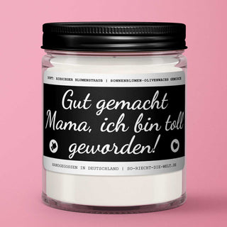 Mama Kerze “Gut gemacht Mama, ich bin toll geworden!” Duft: riesiger Blumenstrauß – 2er Pack ( 5 Euro sparen ) | So riecht die Welt