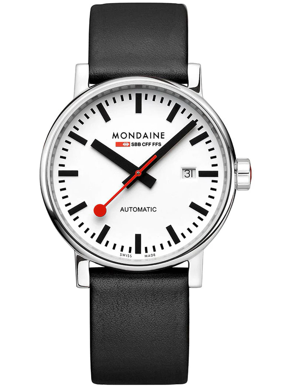 Marke: Mondaine • Hersteller-Nr.: MSE.40610.LBV • Hersteller Serie: Evo2 Automatik 40mm 5ATM • Funktionen: Datum, Minute, Sekunde, Stunde • Antrieb: Automatik • Uhrwerk Bezeichnung: Sellita, SW200, Swiss Made • Zifferblatt Farbe: Weiß • Anzeige: Analog • Wasserdichte: 5 ATM • Lünette: Feststehend • Oberfläche: Poliert • Gehäuse Farbe: Silber • Gehäuse Material: Edelstahl • Gehäusedicke: 10 mm • Gehäuse Form: Rund • Gehäusebreite: 40 mm • Gehäuseboden: Glasboden, verschraubt • Geschlecht: Herren • Glas: entspiegelt, Saphirglas • Stil: Modern • Armband Material: veganes Leder • Armband Farbe: Schwarz • Bandanstoßbreite: 20 mm • Schließe: Dornschließe • Lieferumfang: Anleitung, Box, Garantie Dok., Umkarton