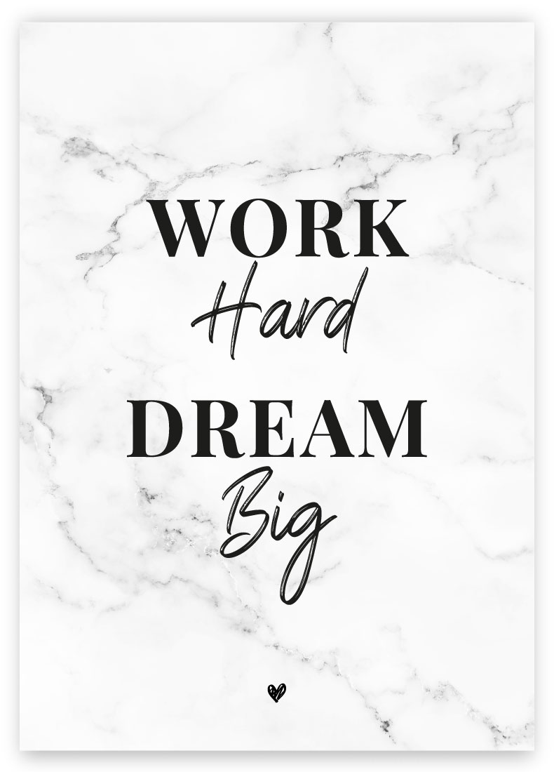 Diese einzigartige Postkarte mit dem englischen Spruch “Work hard dream big“ist zu 100% Made in Germany. Die Postkarte im A6 Format besticht durch ihr schlichtes Design und besteht aus 300g schwerem Chromokarton. Aufgrund der hohen Steifigkeit wird diese schöne Karte nicht so einfach verknickt und bleibt Dir lange erhalten. Alle Donari Karten sind zusätzlich UV-Licht-Beständig und hochqualitativ bedruckt.