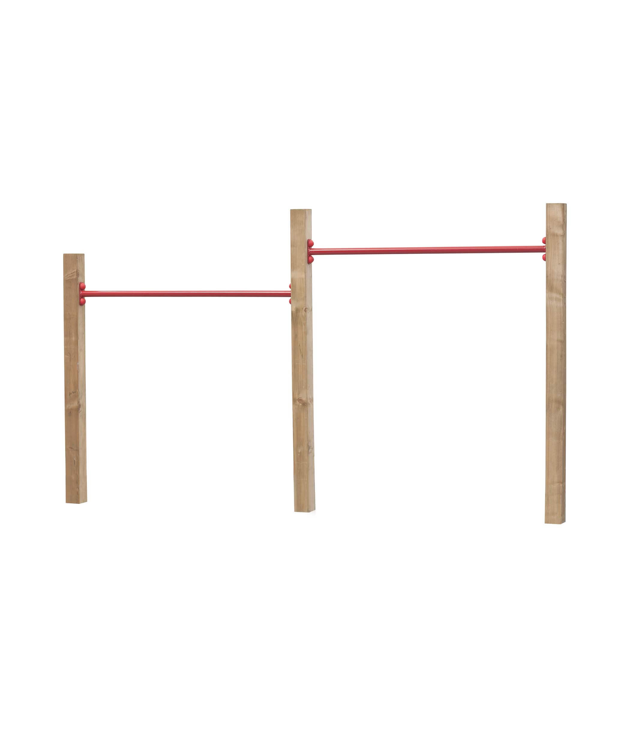 Reckstange dobbel. Quadratische Holzpfosten mit einer Länge von 240 cm + Reckstangen. Super zum tauchen.+ Fsc-zertifiziert+ Reckstangen 125 cm+ 3x imprägnierte Kieferpfähle 9x9x240cm+ Befestigungsmaterial+ Höhe Dehnungsstangen 100cm und 130cm+ Pfostentiefe Boden 90cm+ Benötigte Fläche: 15m2+ Geeignet für 3-12 Jahre+ Private Nutzung+ Handbuch