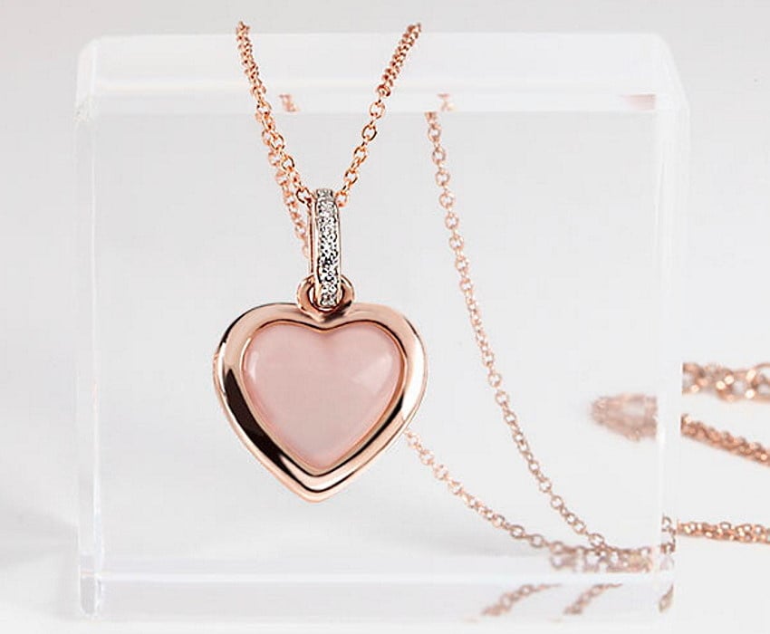 Rosenquarz Herz Collier Silber 925 rosévergoldet | Diamondoro.de quantity