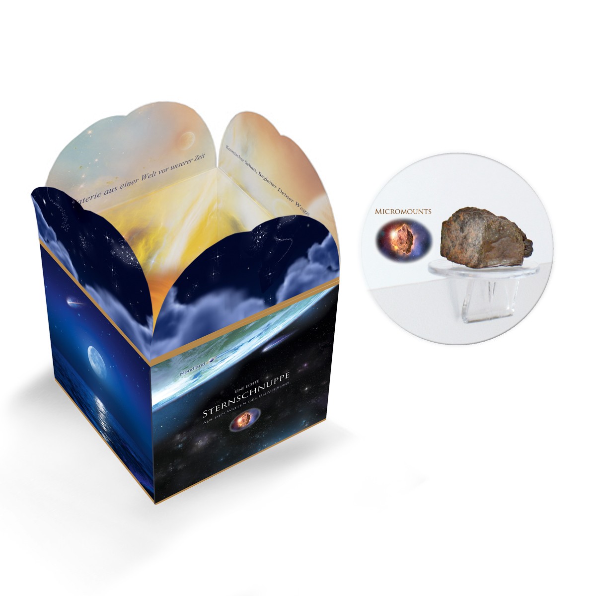 Echte Sternschnuppen exklusive Fundstücke veredelt Sammlerstücke in Würfelbos mit Zertifikat.