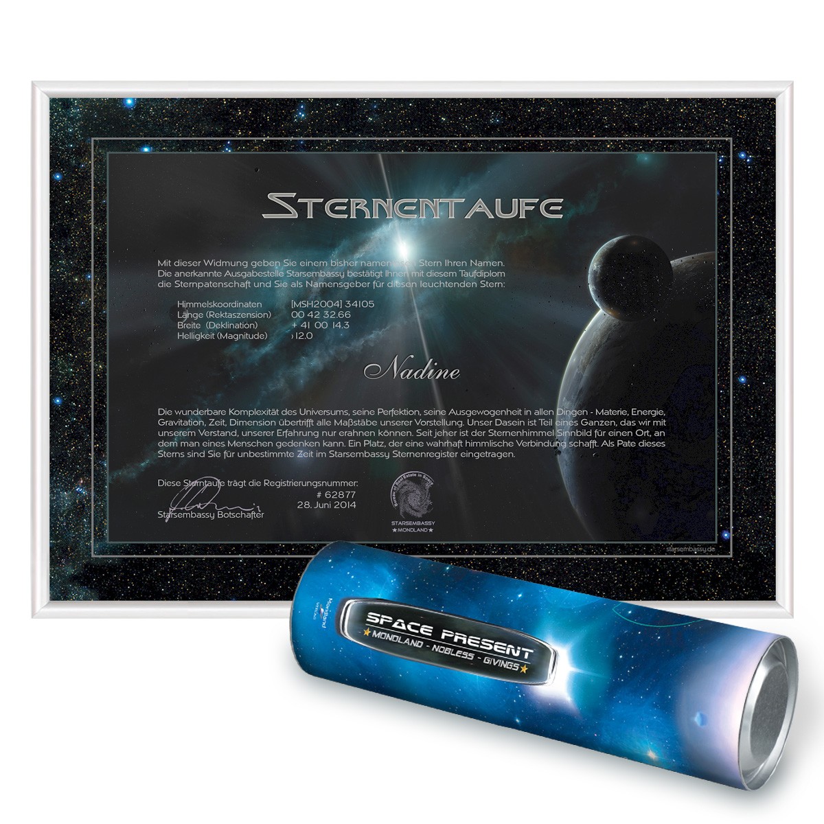Verschenke einen Stern mit der romantischen Sterntaufe das perfekte Geschenk für Verliebte. Benenne einen echten leuchtenden Stern nach Deinem Liebsten und schenke Romantik pur..