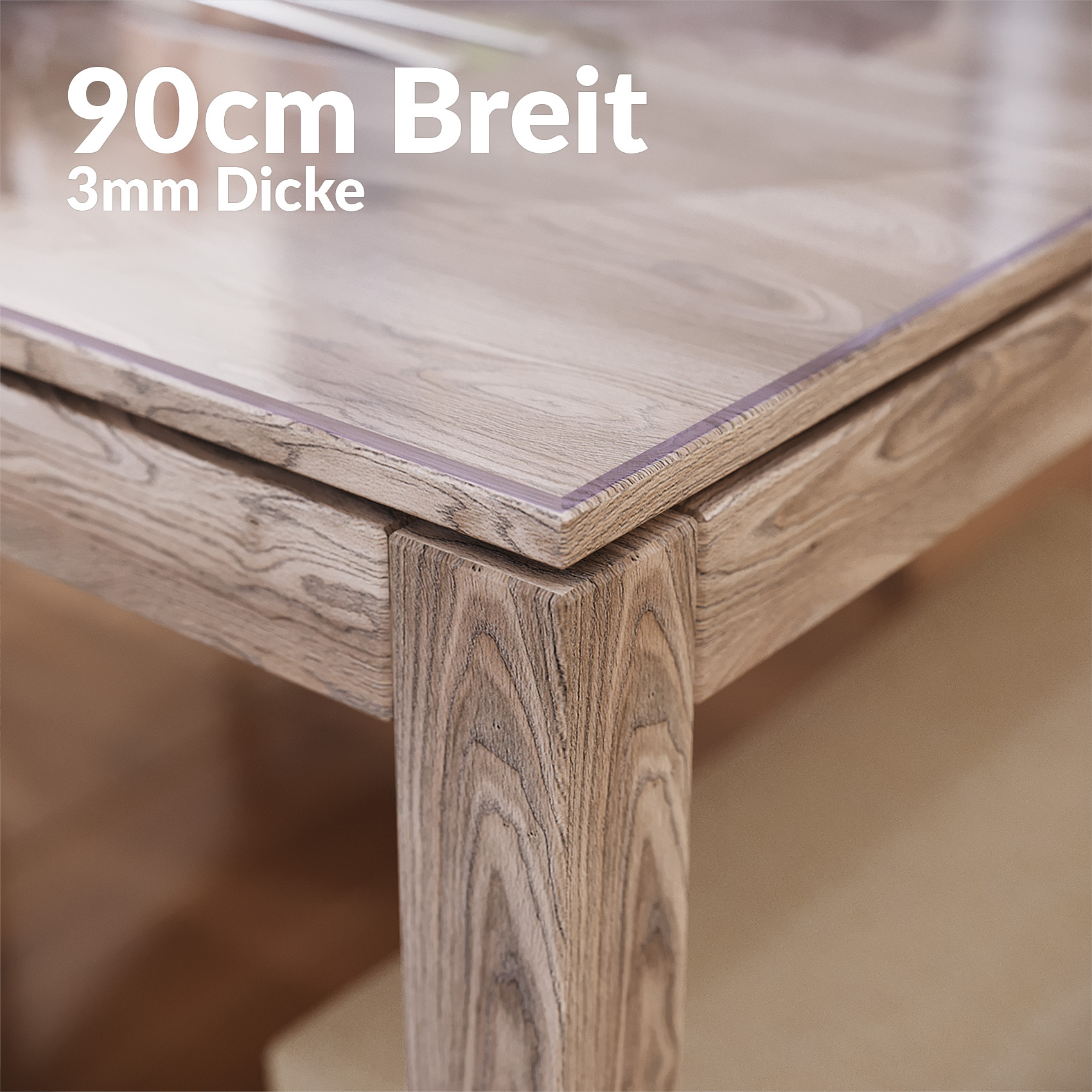 Die 3mm transparente Tischfolie bietet optimalen Schutz für empfindliche Oberflächen . Durch die Tischfolie kommt Ihr Tisch weiterhin perfekt zur Geltung und wird nicht versteckt. Sie schützt jedoch nicht nur die Oberfläche, sondern dämpft auch Geräusche von Geschirr ab und macht Ihr Essen zu einem ruhigen, angenehmen Erlebnis. Die Tischschutzfolie ist in der Breite 90cm erhältlich und kann vor Ort mit einer Schere oder einem Cuttermesser ganz leicht an die Gegebenheiten angepasst werden. Tischfolie 3mm – robust und rutschfest Die Schutzfolie für den Tisch ist durch die 3mm Stärke besonders stabil und bleibt gleichzeitig flexibel . Sie ist robust genug , um den Tisch vor Flecken, Kratzern und anderen äußeren Einwirkungen zu schützen und leicht genug, um die Optik des Tisches nicht zu stören. Auf Grund des Eigengewichts ist die Tischfolie transparent besonders rutschfest . So können auch nicht versehentlich Gläser durch ein Verwackeln der Tischschutzfolie